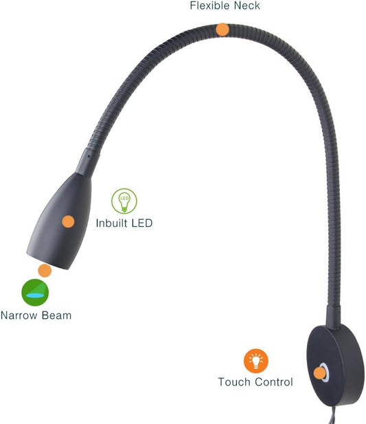Dimmable Reading Light Gooseneck LED Task Light Minimalist Directional Light Light Headboard/Wall Surface Mount Matte Black